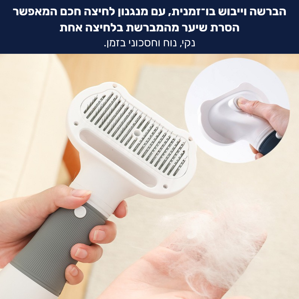 ✔ כפתור ייעודי להסרת שיער מהמברשת בלחיצה אחת - משחרר את כל הפרווה שהצטברה, נקי ומוכן לשימוש הבא