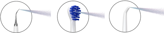 המסירה בעדינות שאריות מזון, פלאק ואבנית – גם במקומות שקשה להגיע אליהם.שלושת הראשים (מברשת, מסיר אבנית וראש סילון מים)