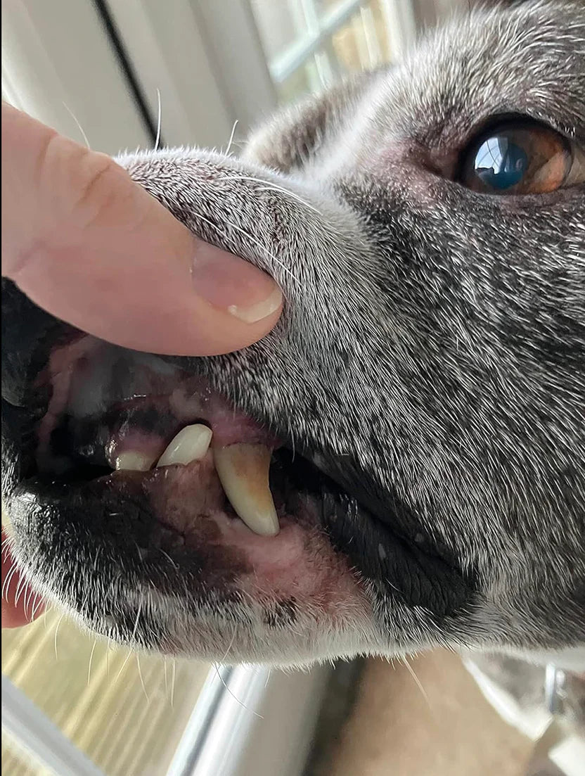 אבנית ופלאק הם לא רק עניין של מראה – הם מלאים בחיידקים שעלולים לגרום לדלקות חניכיים, כאבים, ריח רע, ואפילו לפגוע בבריאות הכללית של הכלב.